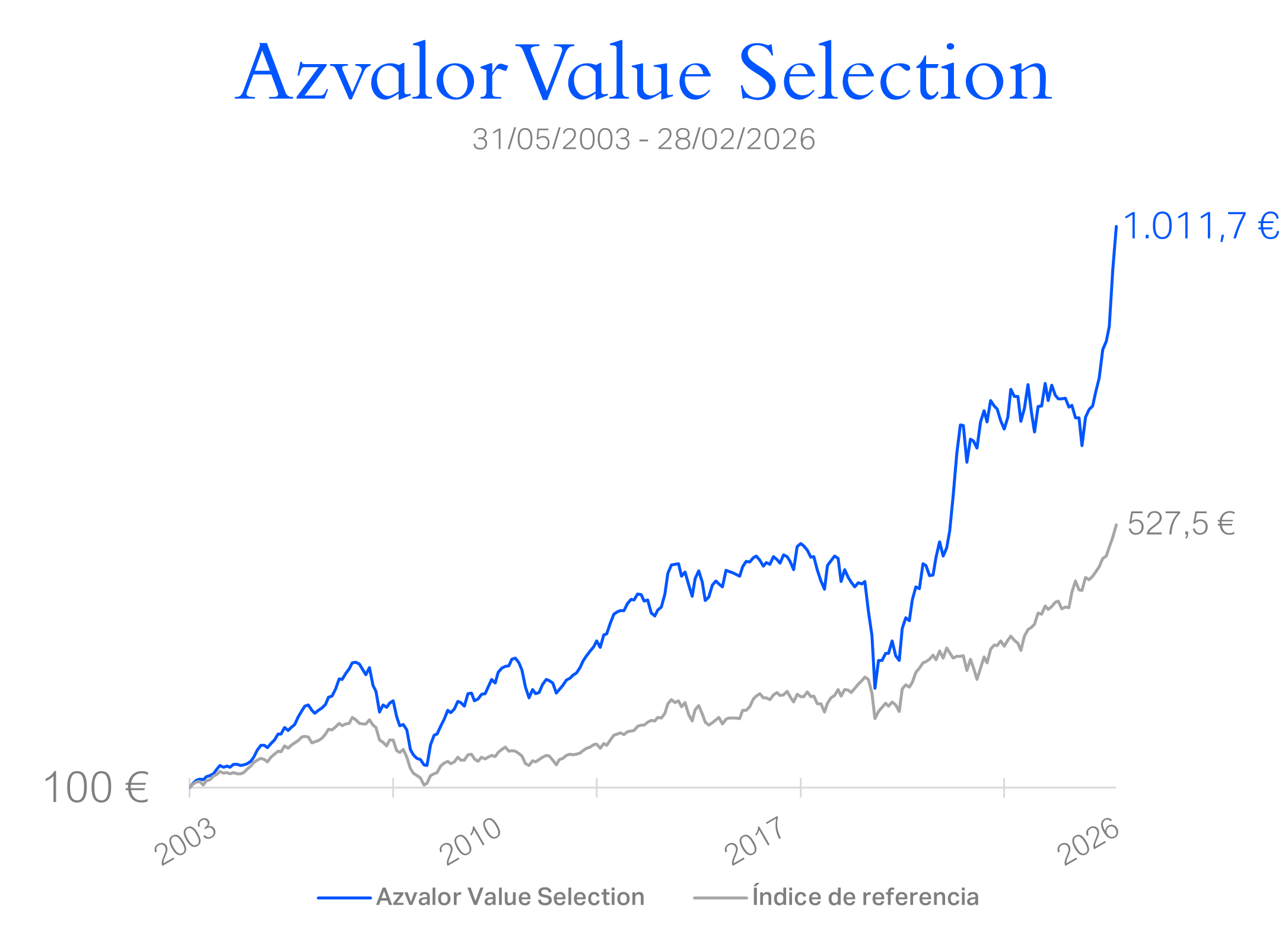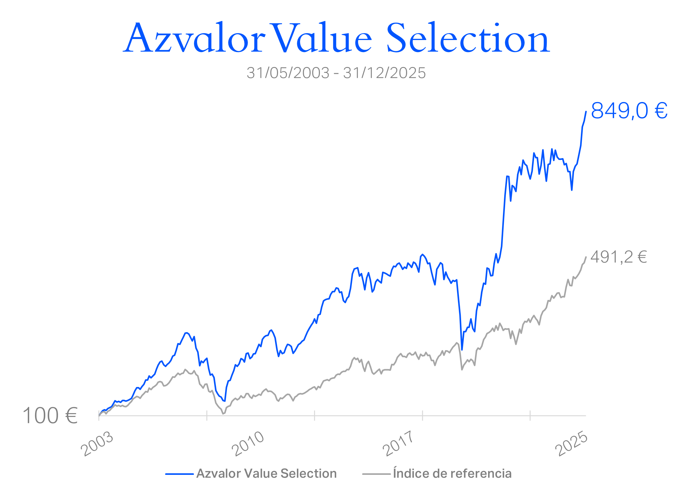 El equipo de gestión de Azvalor, además de ser socios fundadores, lleva más de dos décadas haciendo crecer los ahorros de los inversores junto, a los propios, batiendo a los índices.
